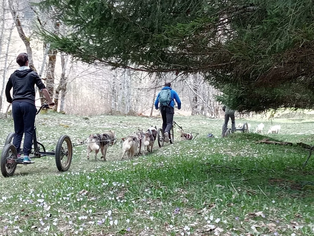Nous ne proposons pas de sorties pour des ballades assit dans le kart ou traîneau, mais uniquement des sorties de conduite, chacun conduisant seul son attelage. Les sorties sont encadrées. Vous ne partez pas seuls avec les chiens.